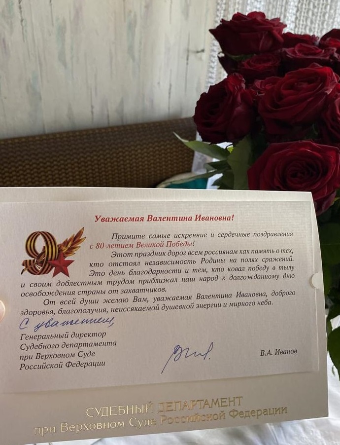 в отставке поздравления, цветы и подарки от руководства Управления Судебного