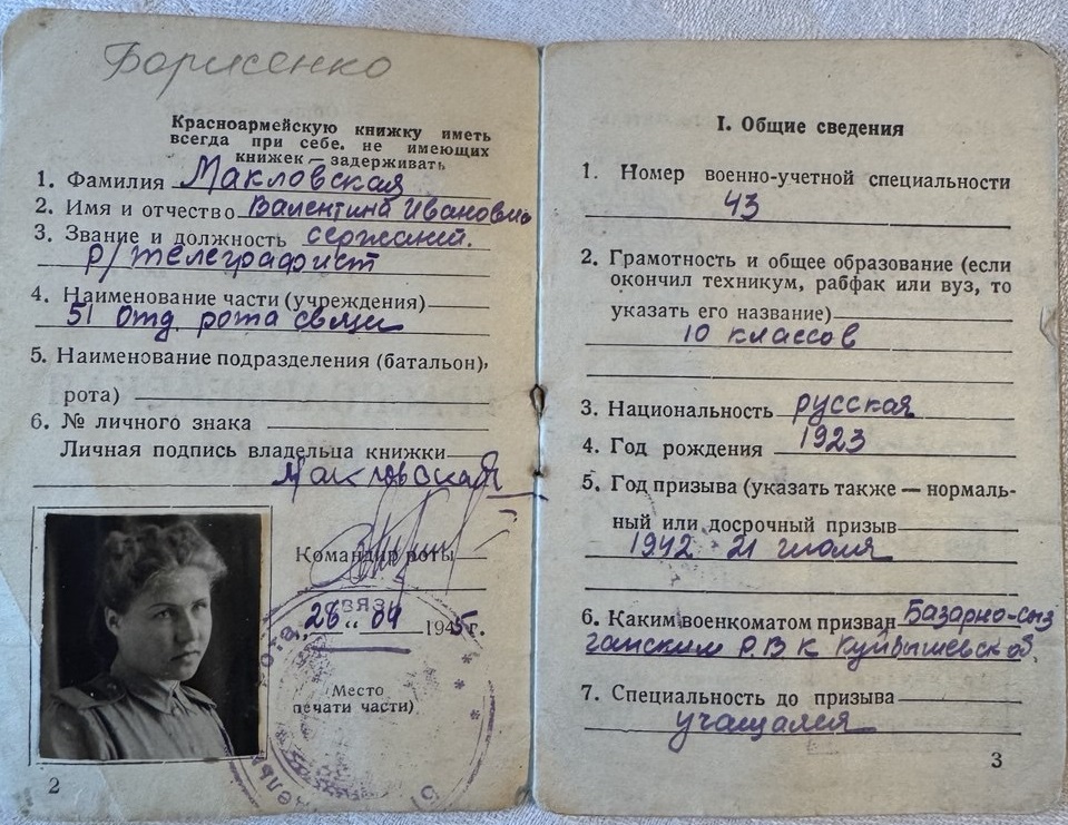 комсомольскому призыву была призвана на службу в ряды Советской Армии, направлена